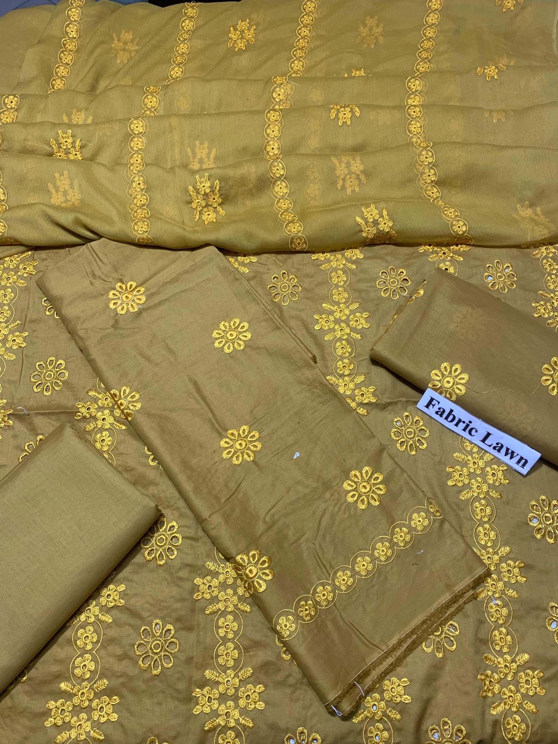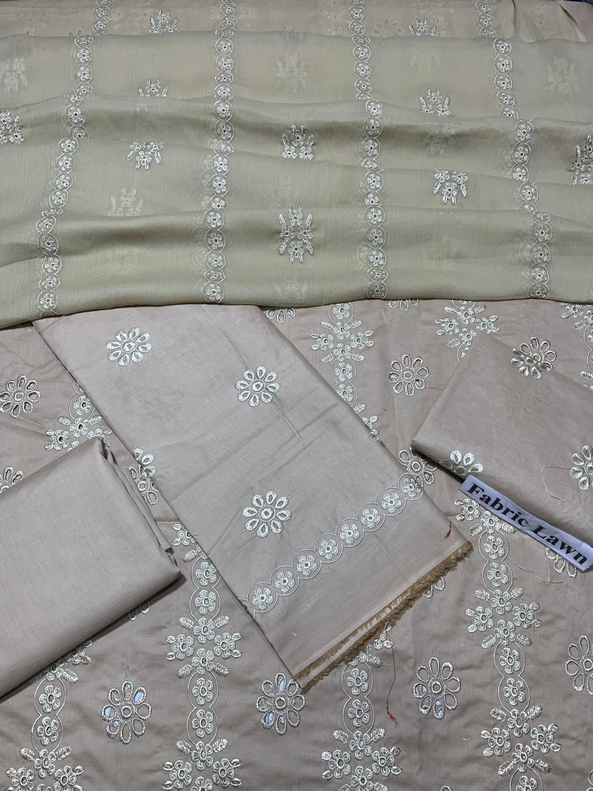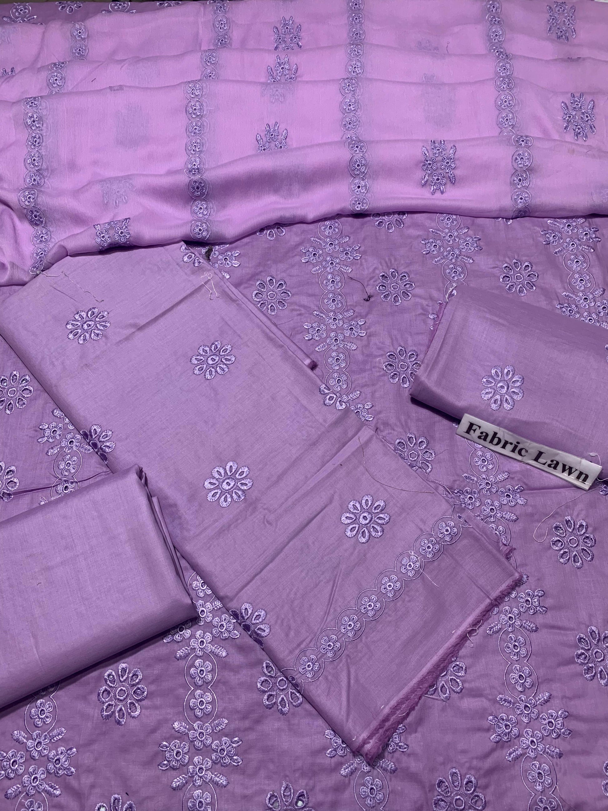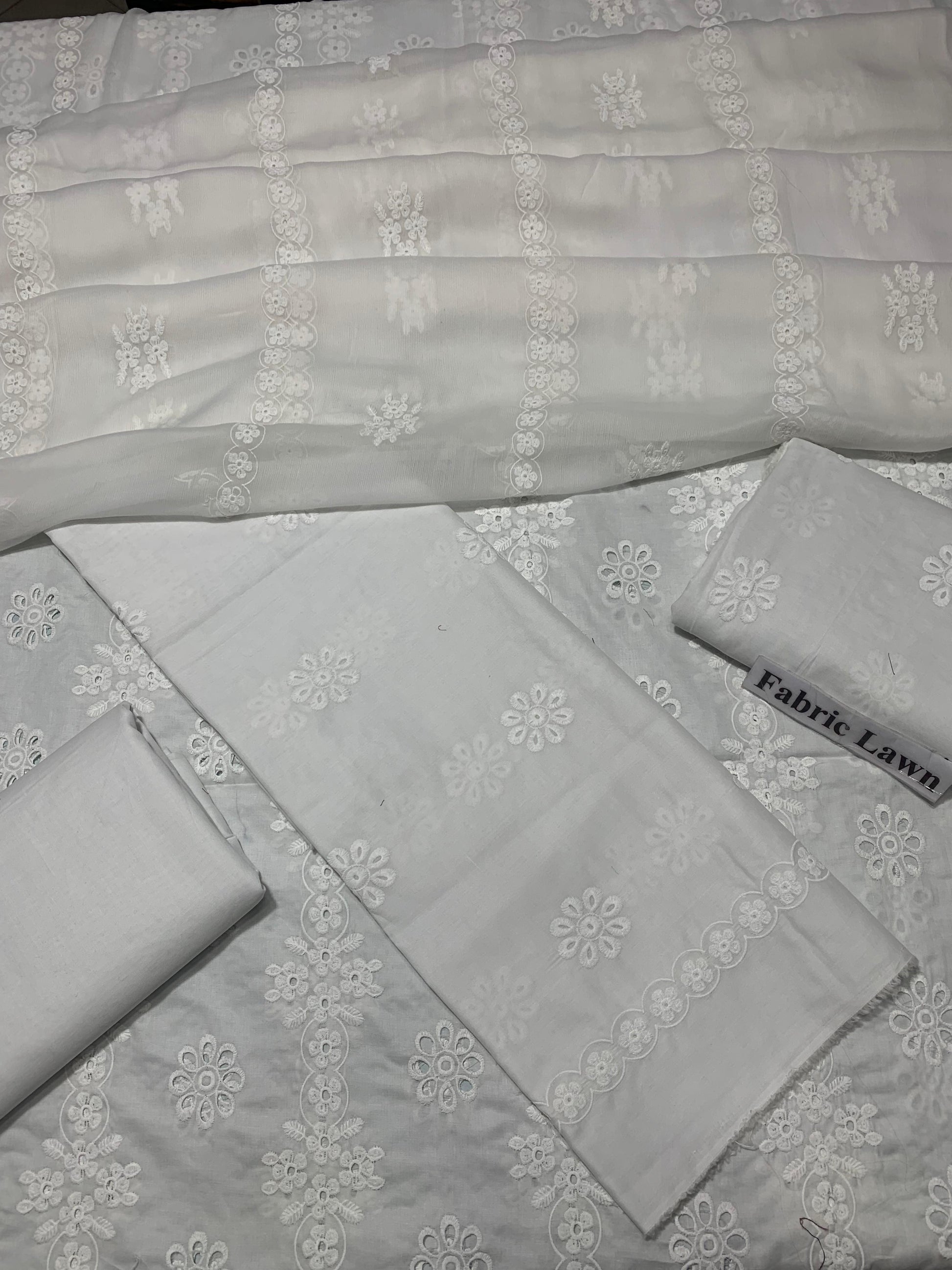Chikan Kari - Lawn 3 Pcs Embroidered unstitched Dress with Chiffon Dupatta.