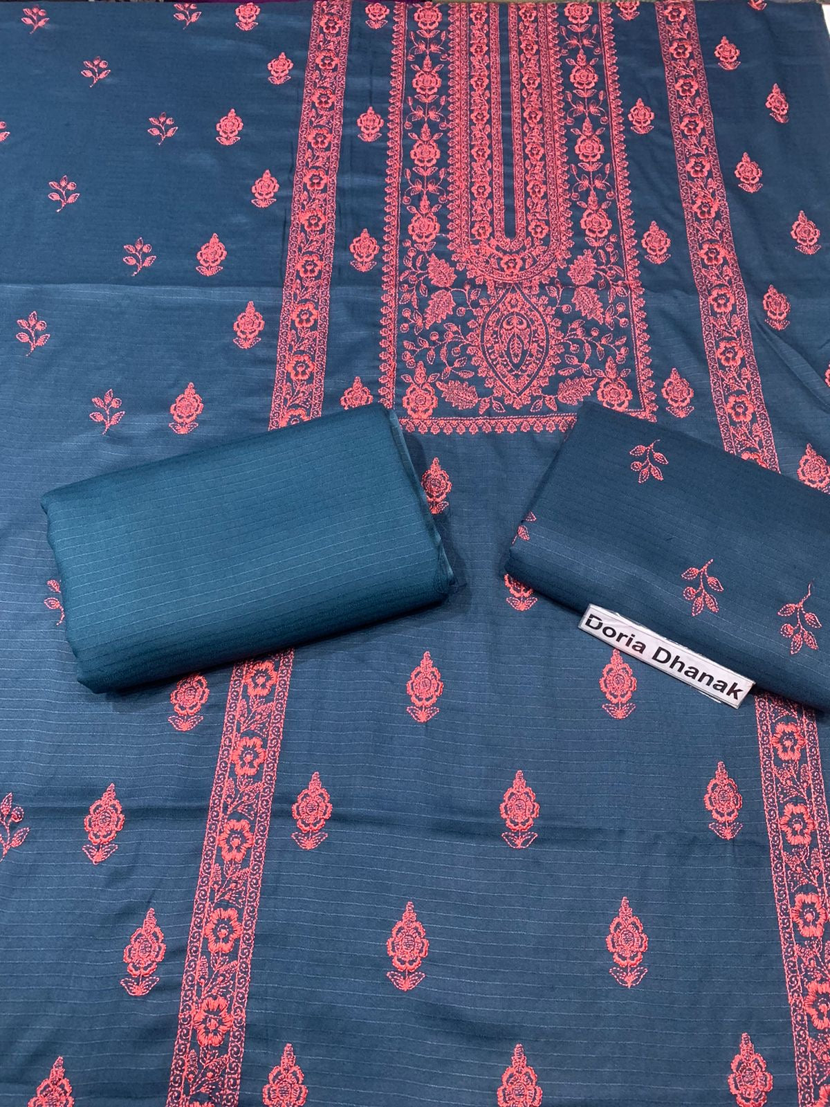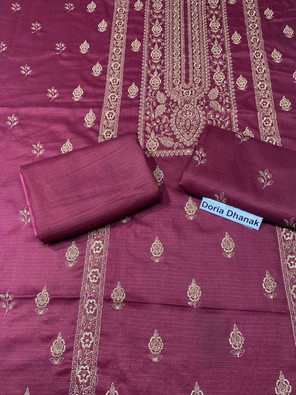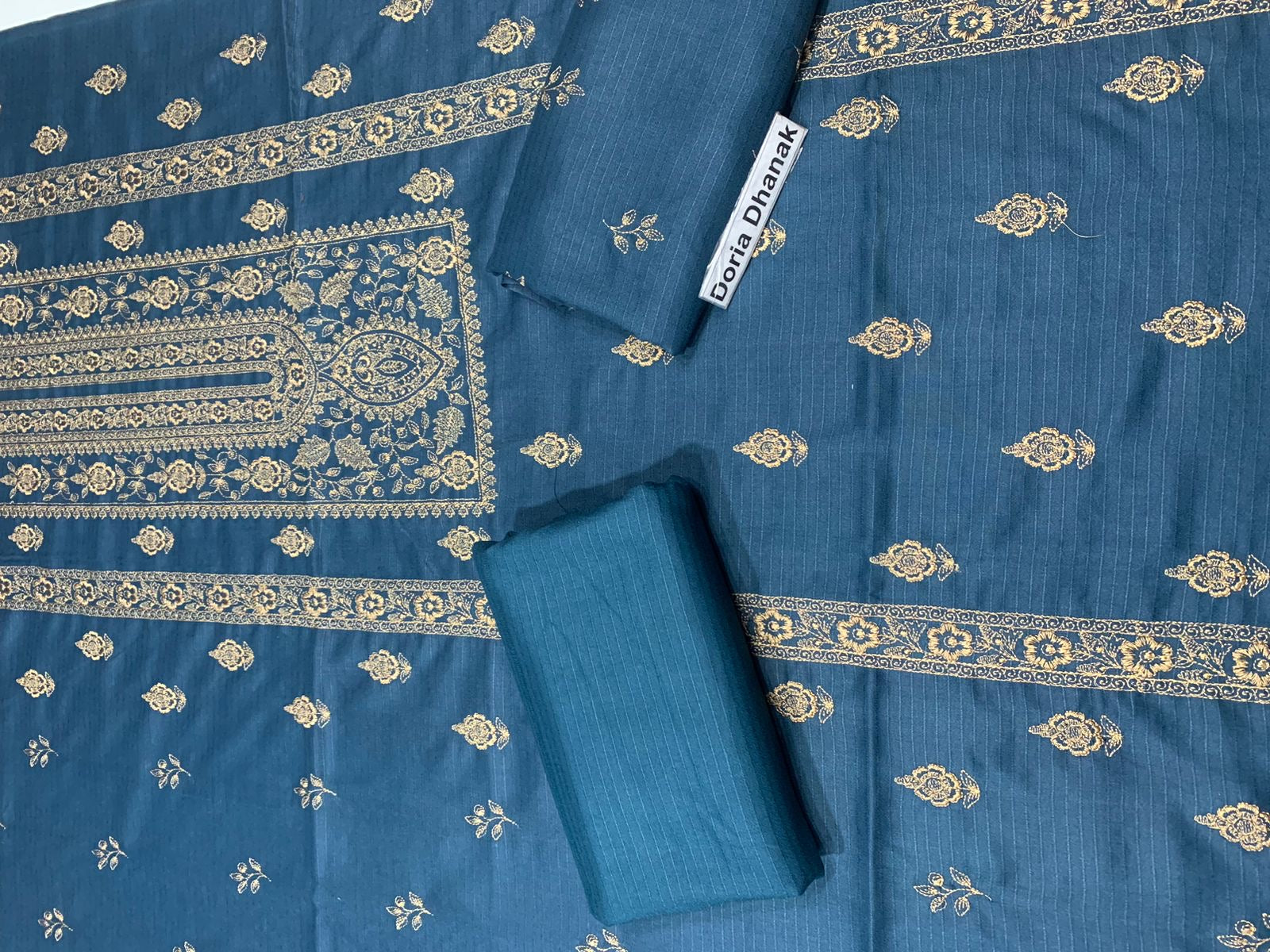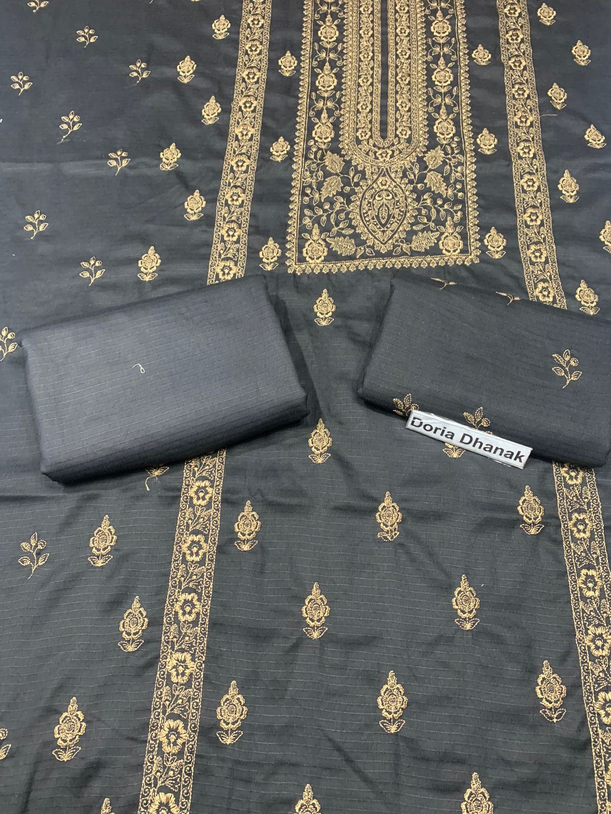 Doria Dhanak - 2Pcs Embroidered Shirt with Plain Trouser.