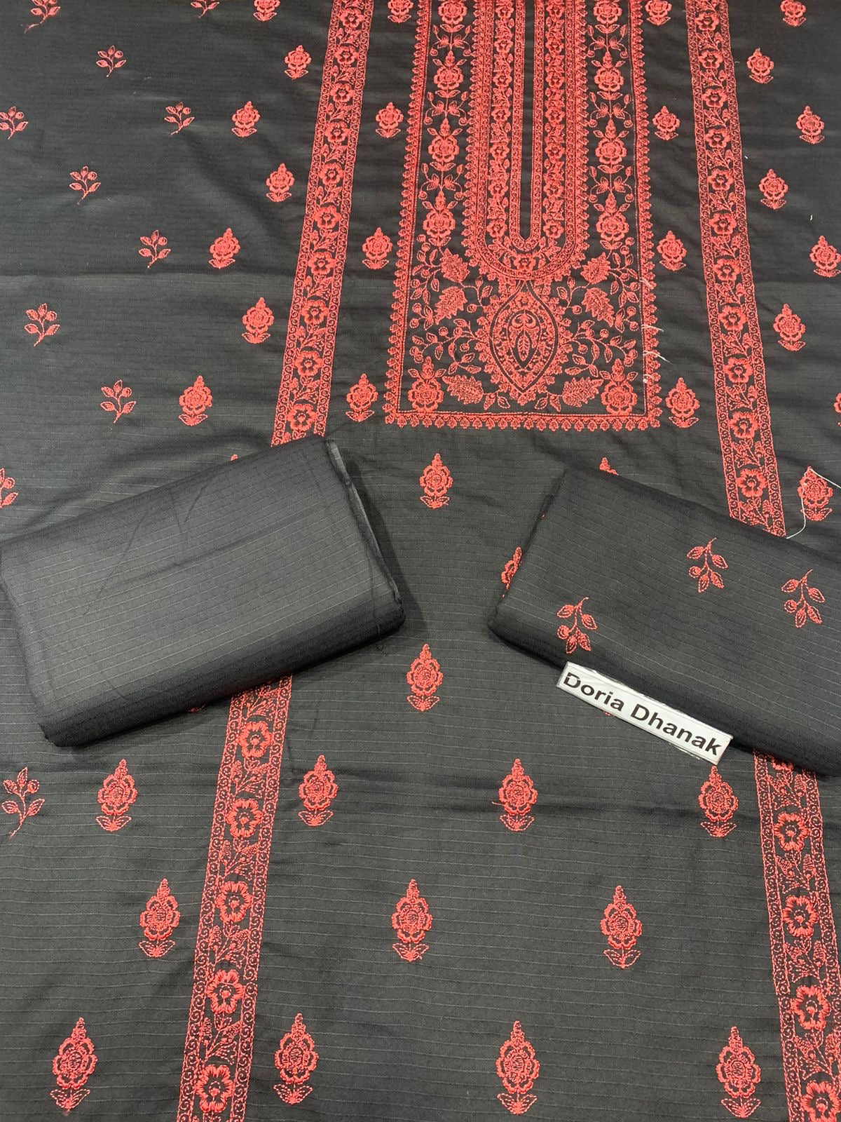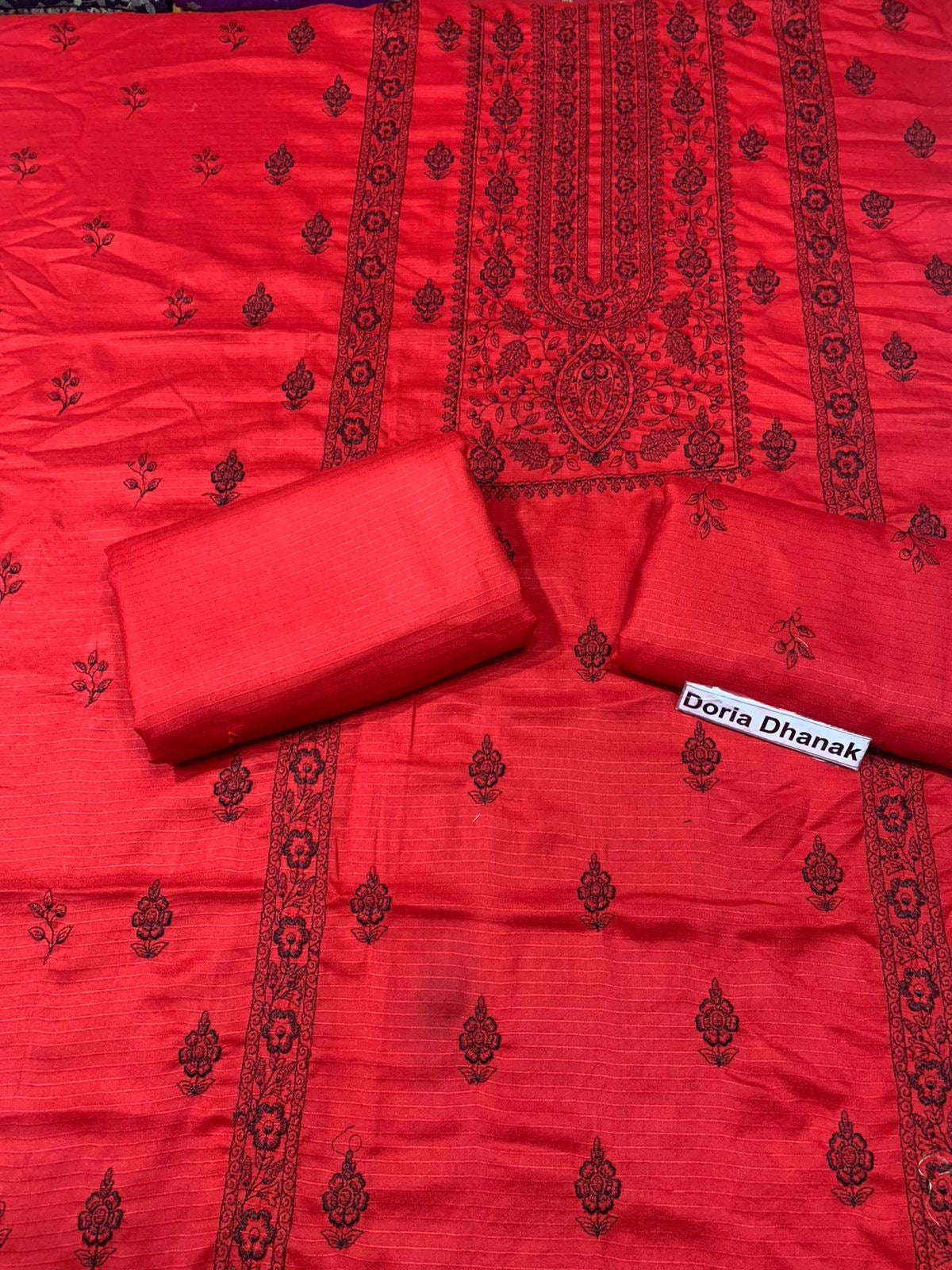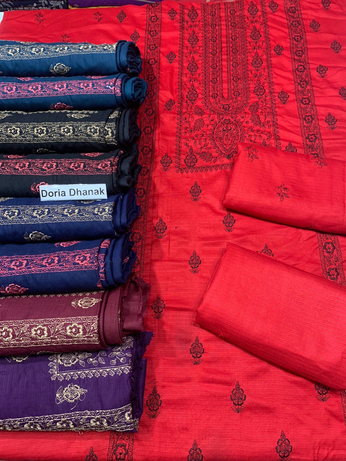 Doria Dhanak - 2Pcs Embroidered Shirt with Plain Trouser.