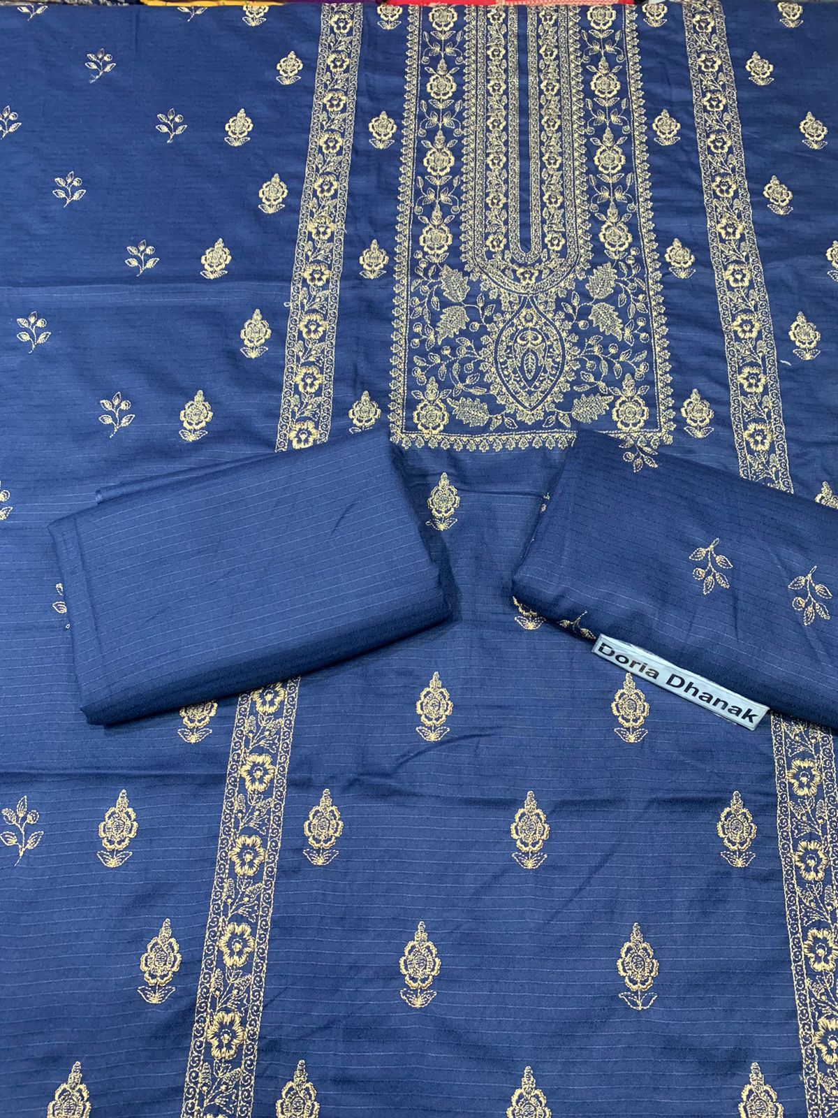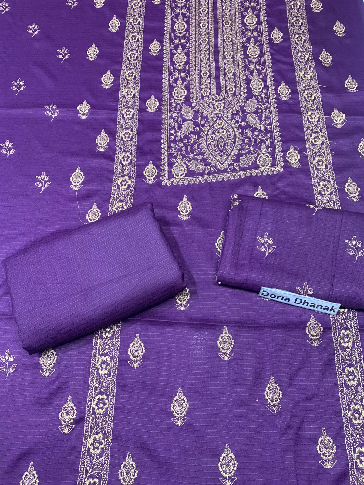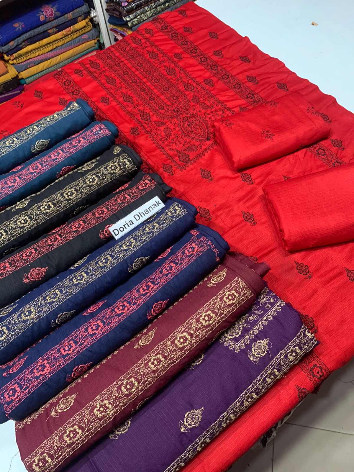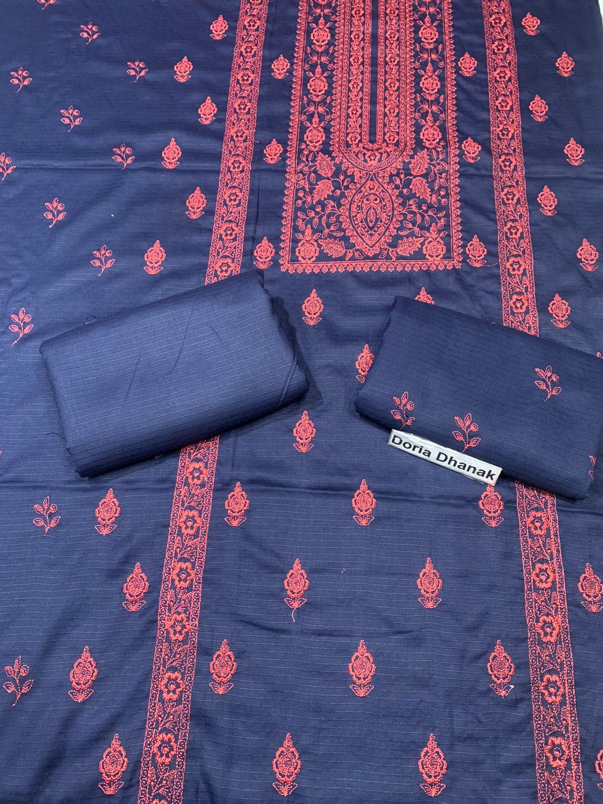Doria Dhanak - 2Pcs Embroidered Shirt with Plain Trouser.