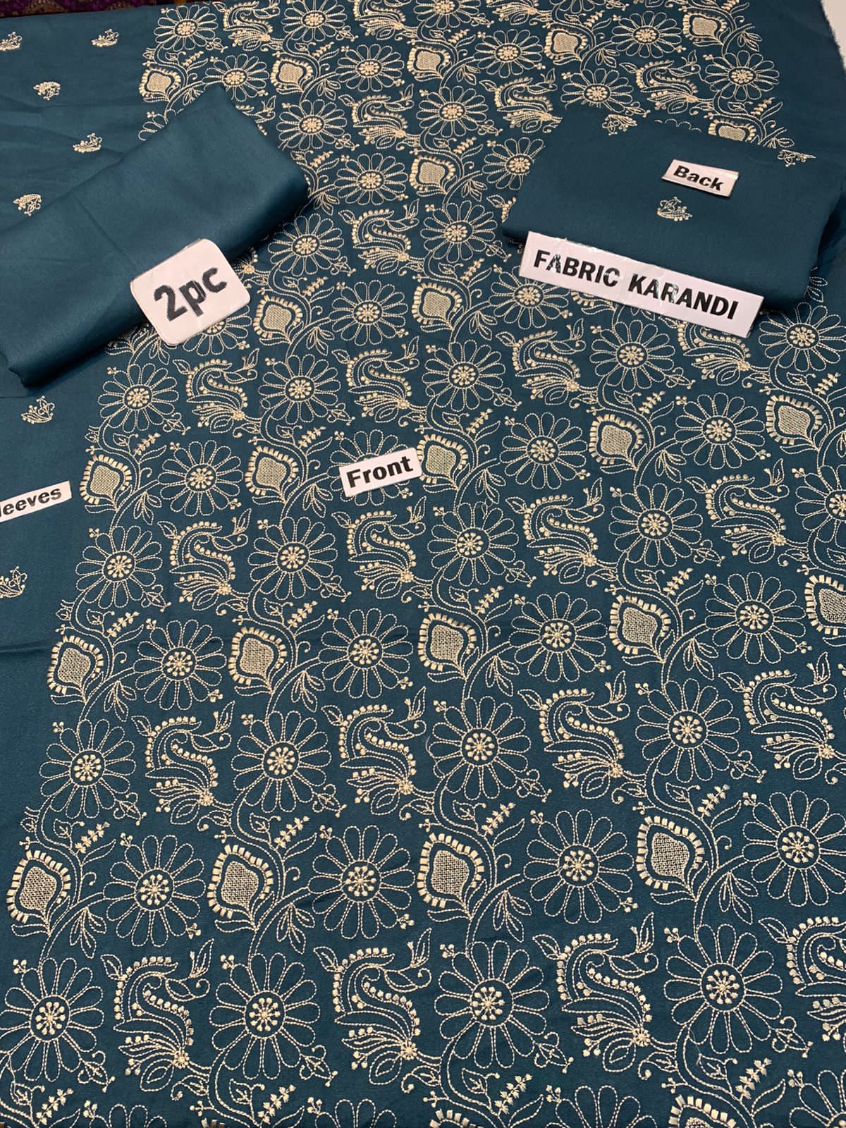 Embroidered Shirt With Plain Karandi Trouser. Stuff: Premium Quality Staple Karandi.