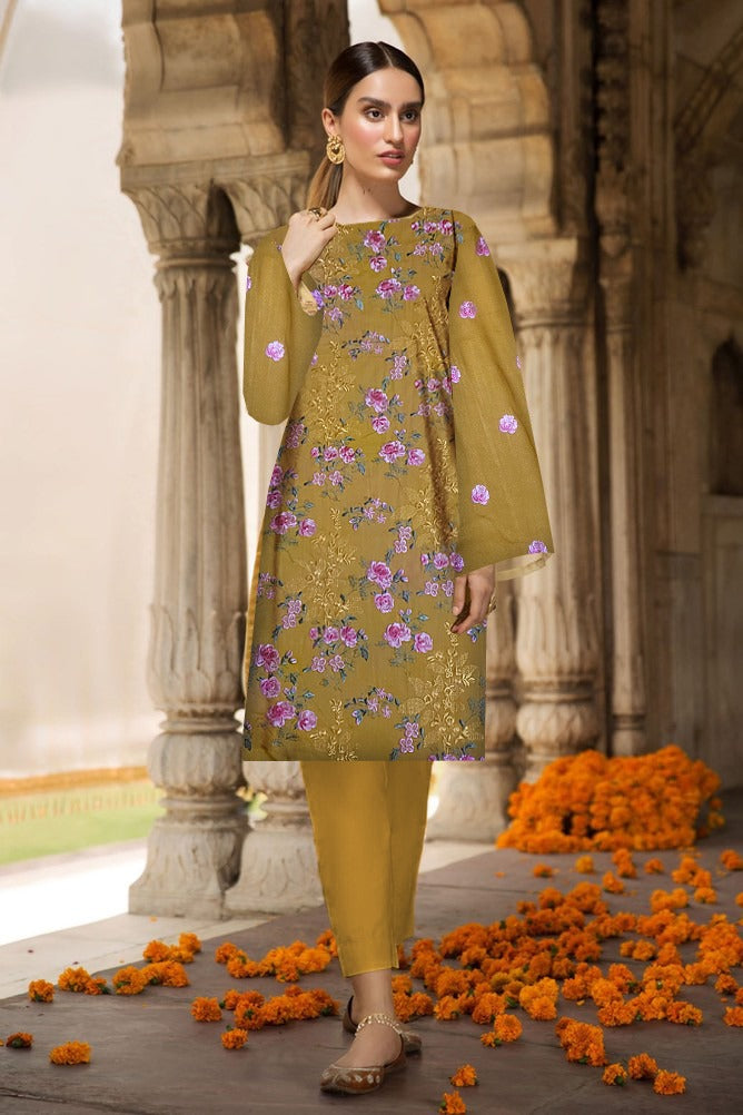 Embroidered Shirt With Plain Karandi Trouser. Stuff: Premium Quality Staple Karandi.