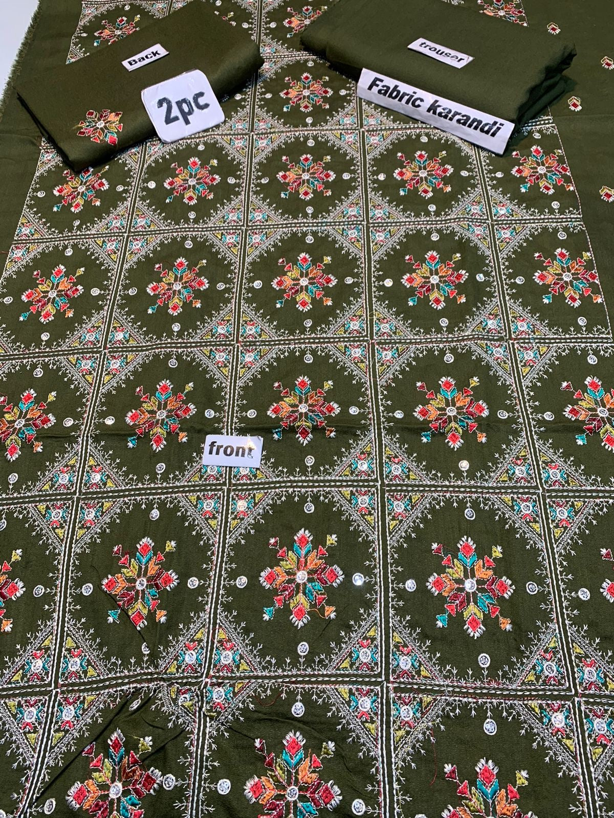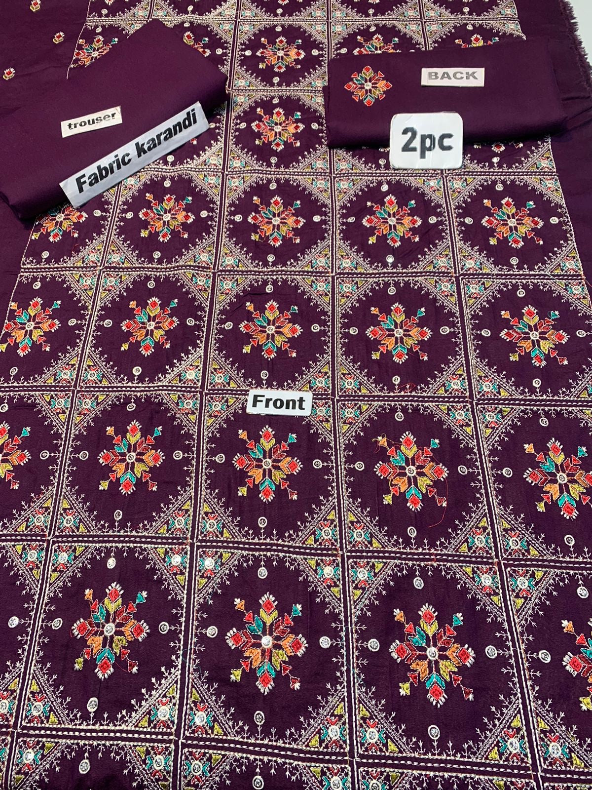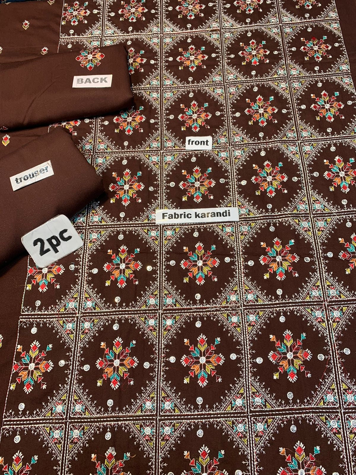 Embroidered Shirt With Plain Karandi Trouser.     Stuff: Premium Quality Staple Karandi.