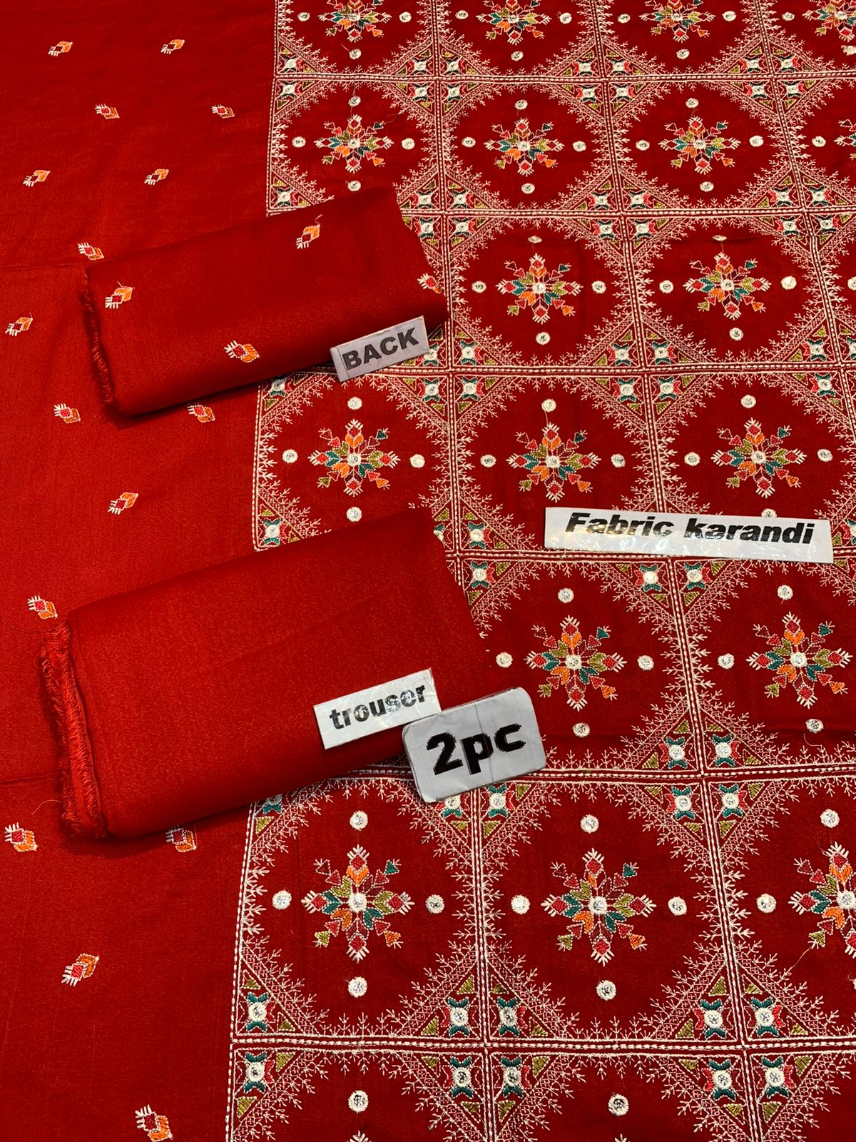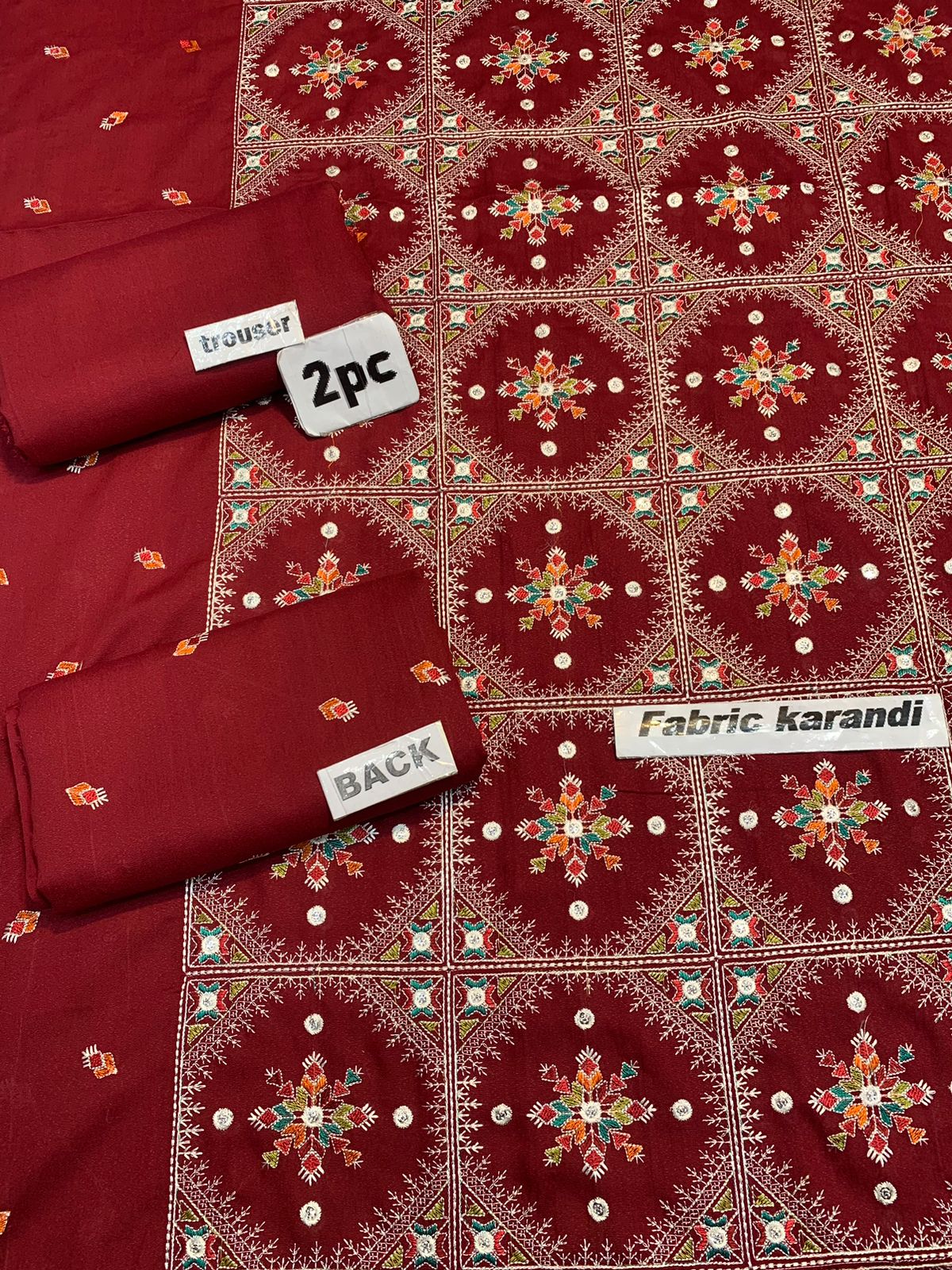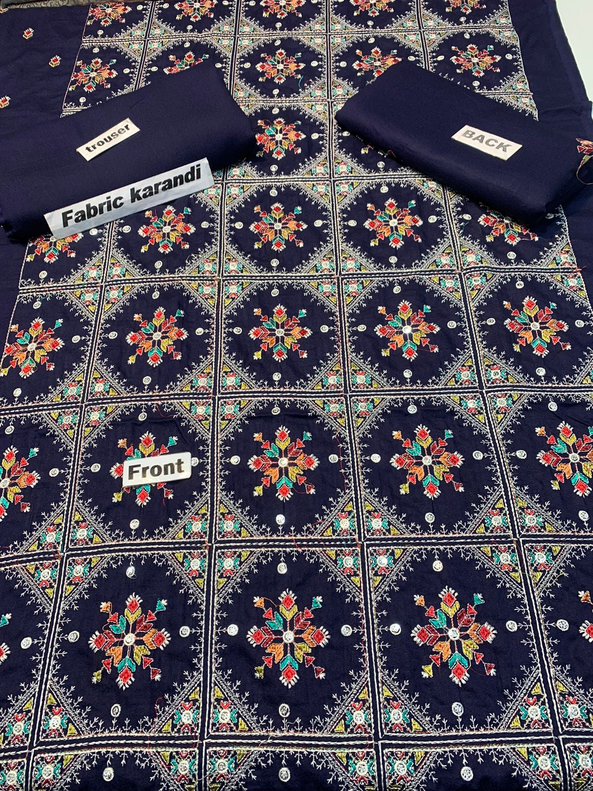 Embroidered Shirt With Plain Karandi Trouser.     Stuff: Premium Quality Staple Karandi.
